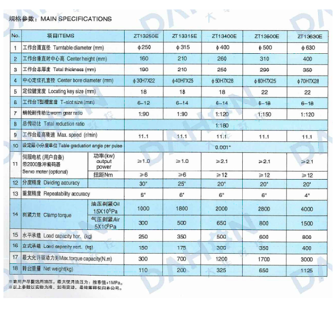 ZT13E系列數控立臥回轉工作臺是各類數控鏗、銑床和加工中心的關鍵配套附件,可以主軸垂直和水平兩種方式安裝在主機工 作臺上,用作主機的第四回轉釉。轉臺在主機相關控制系統控制下, 可實現等分的和不等分的孔、梏或者連續特殊曲面的加工,且保證很高的加工精度。